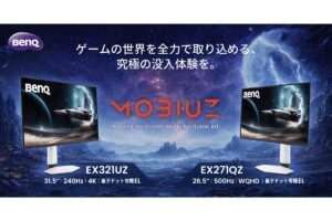 ベンキュージャパンは、ゲーミングモニターブランド「MOBIUZ」より、31.5型4K 量子ドット有機ELゲーミングモニター「EX321UZ」と26.5型WQHD 量子ドット有機ELゲーミングモニター「EX271QZ」を発売する。31.5型モデル「EX321UZ」を4月より、26.5型モデル「EX271QZ」を3月31日より発売。
