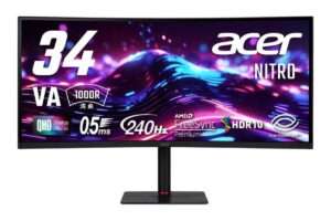 【Acer Nitro XV345CURXbmiipphx】34型・UWQHD・1000R曲面VAパネル・最大240Hz・0.5ms・HDR10・Adobe RGB 90%を備えたハイエンドウルトラワイドゲーミングモニターがAmazonにて6%OFFの49,999円