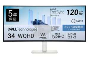 【Dell S3425DW-A】34型ウルトラワイド・VAパネルを採用し、120Hzリフレッシュレート、USB‑C 65W給電、DCI‑P3 95%色域、デュアル5Wスピーカー を備えた、作業効率とエンタメ性を両立したコストパフォーマンスの高い曲面モニターがAmazonにて10%OFFの61,920円