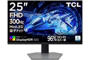 【TCL 25G64】量子ドット Mini LED バックライト・300Hzリフレッシュレート・HDR600対応・DCI‑P3 97%広色域・1ms応答を備えた25型フルHDゲーミングモニターがAmazonにて25,230円